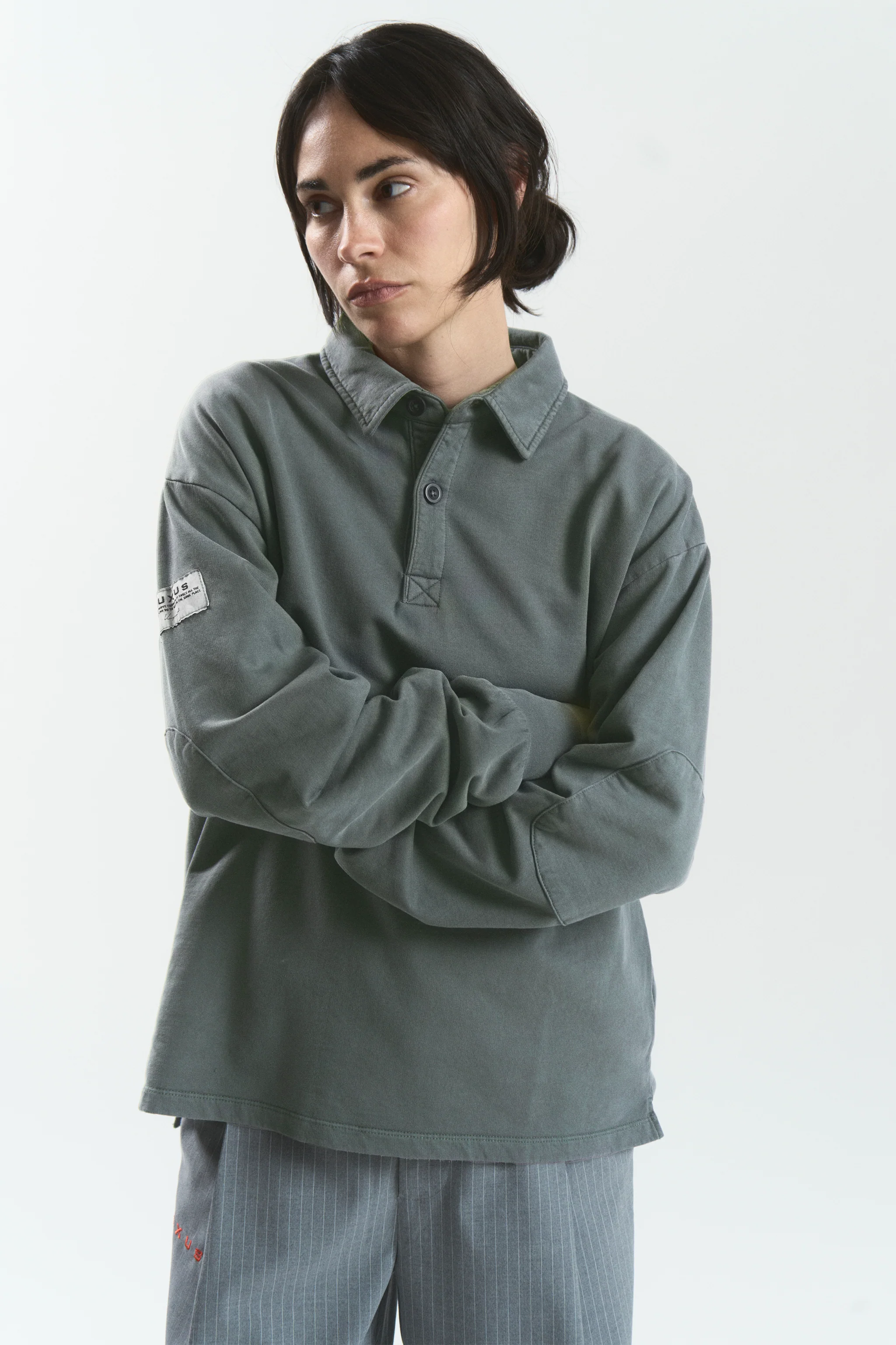 Introducing the Vanguard polo in olive green color, a piece designed to catch the vibrancy and innovation of the world's most metropolitan streets. This collection defies convention, showcasing a bold, modern style that redefines urban cool. With bold cuts, unusual textures and distinctive details, our garments are a reflection of a life in constant motion.