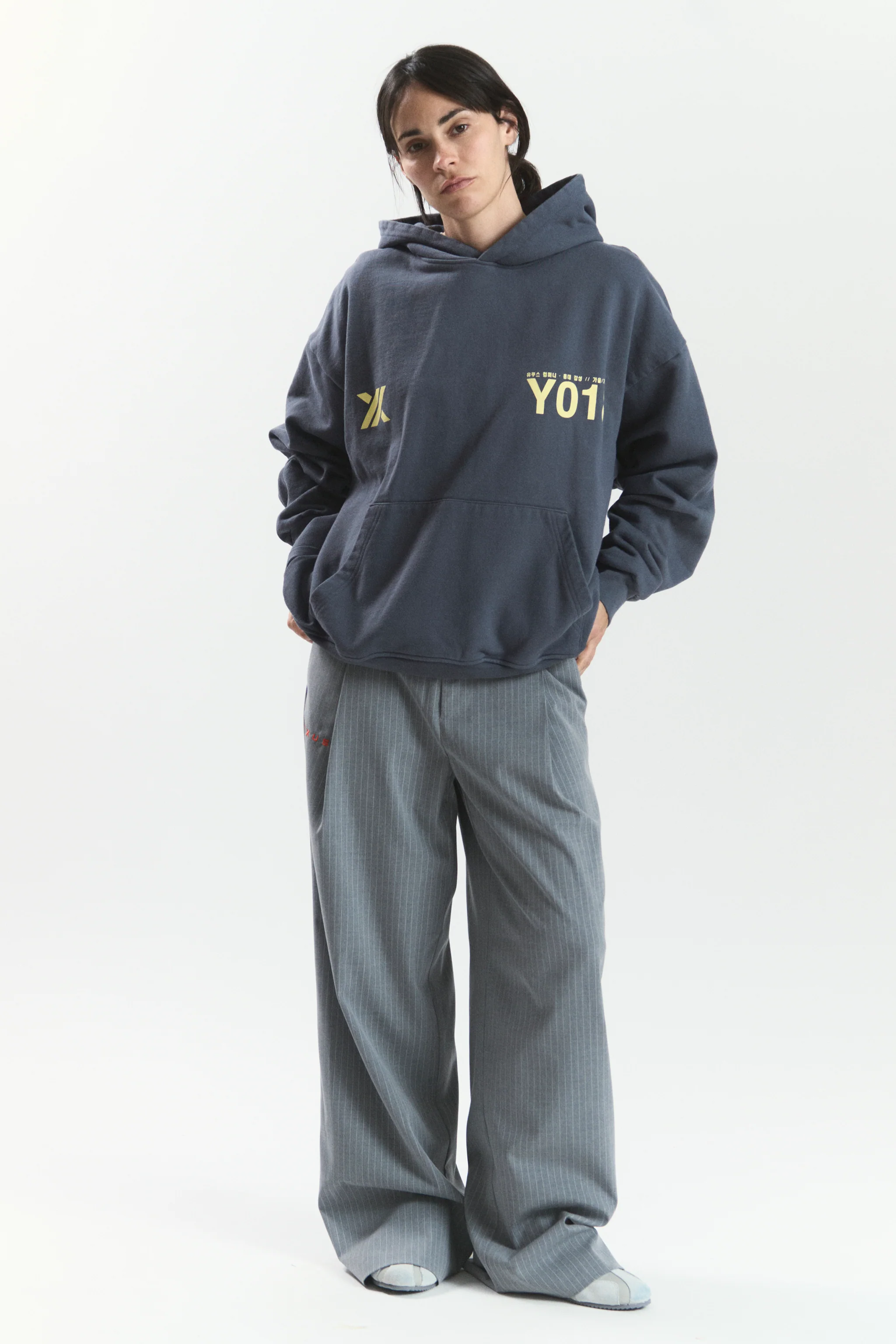 Introducing the Hongdae hoodie in dusted dark blue with yellow contrast color. We traveled to South Korea to bring our Fall Winter 2025 collection to life—a collection inspired by one of Seoul’s most creative and dynamic neighborhoods.